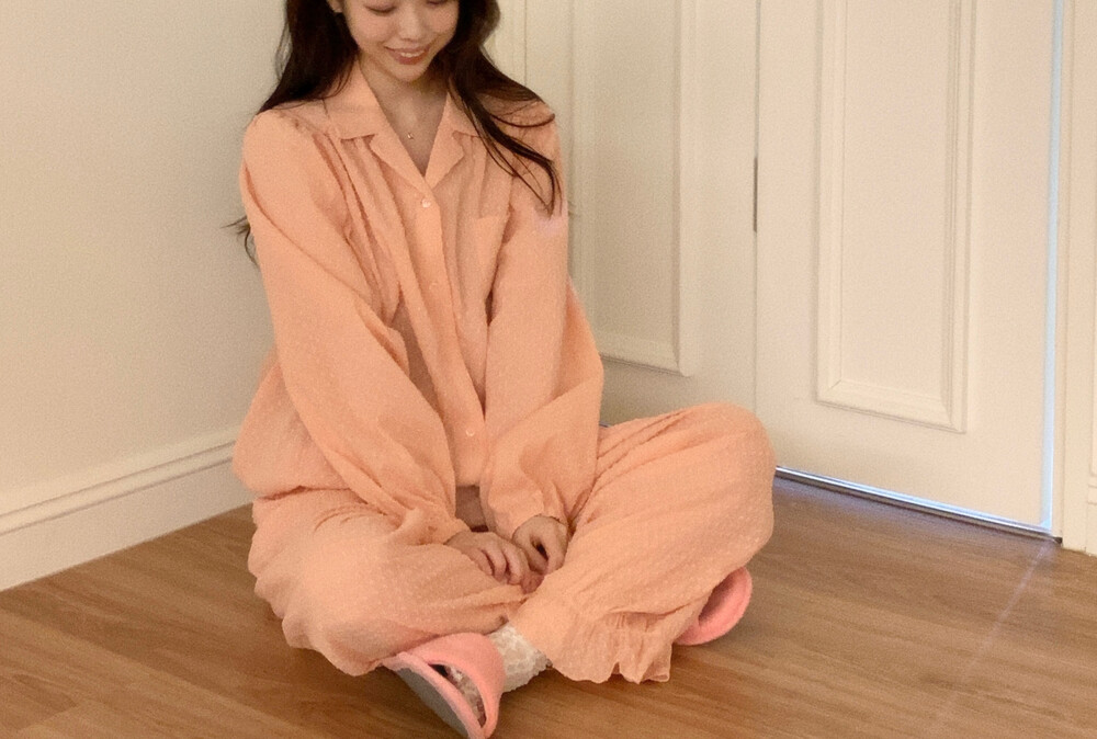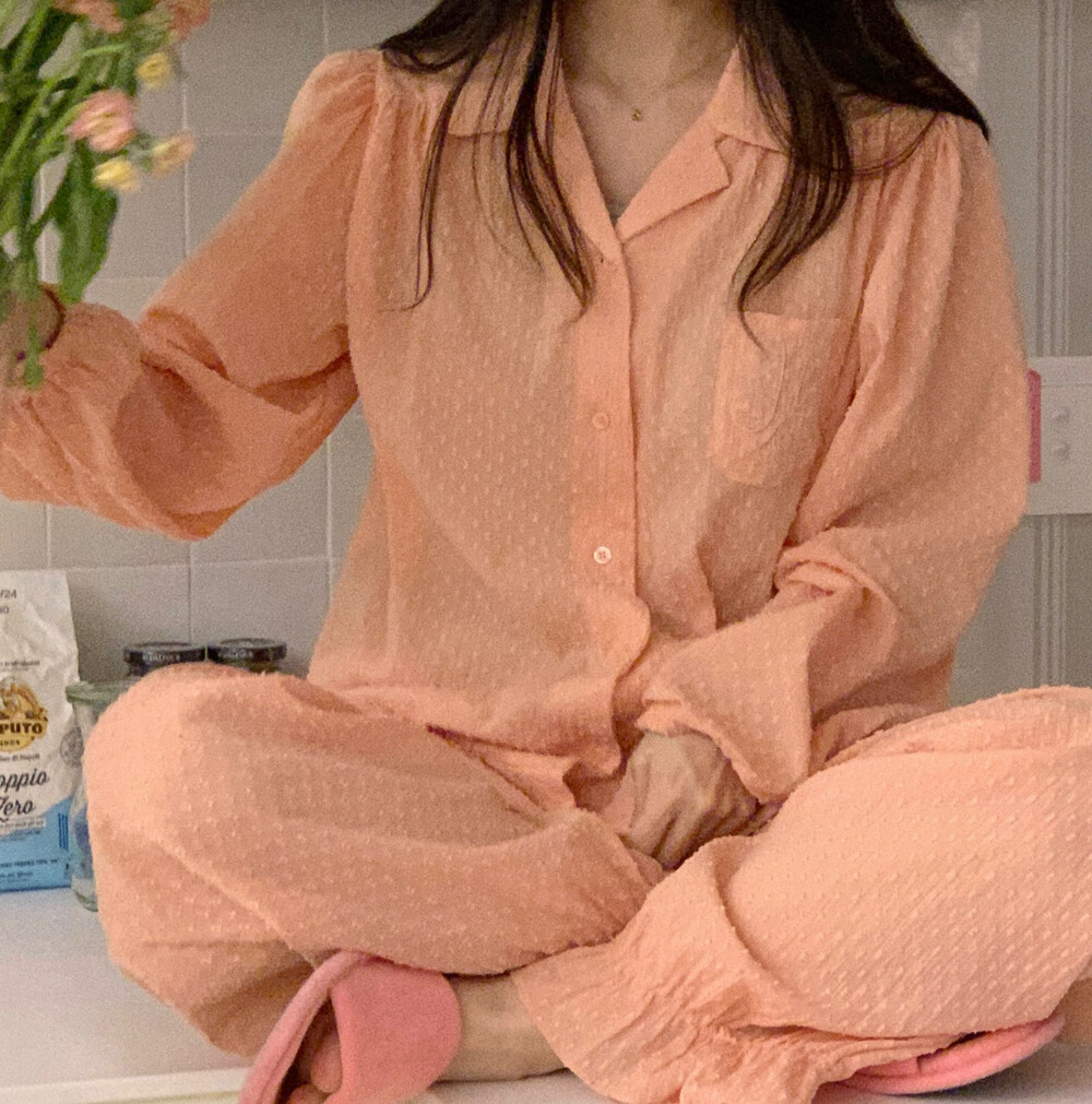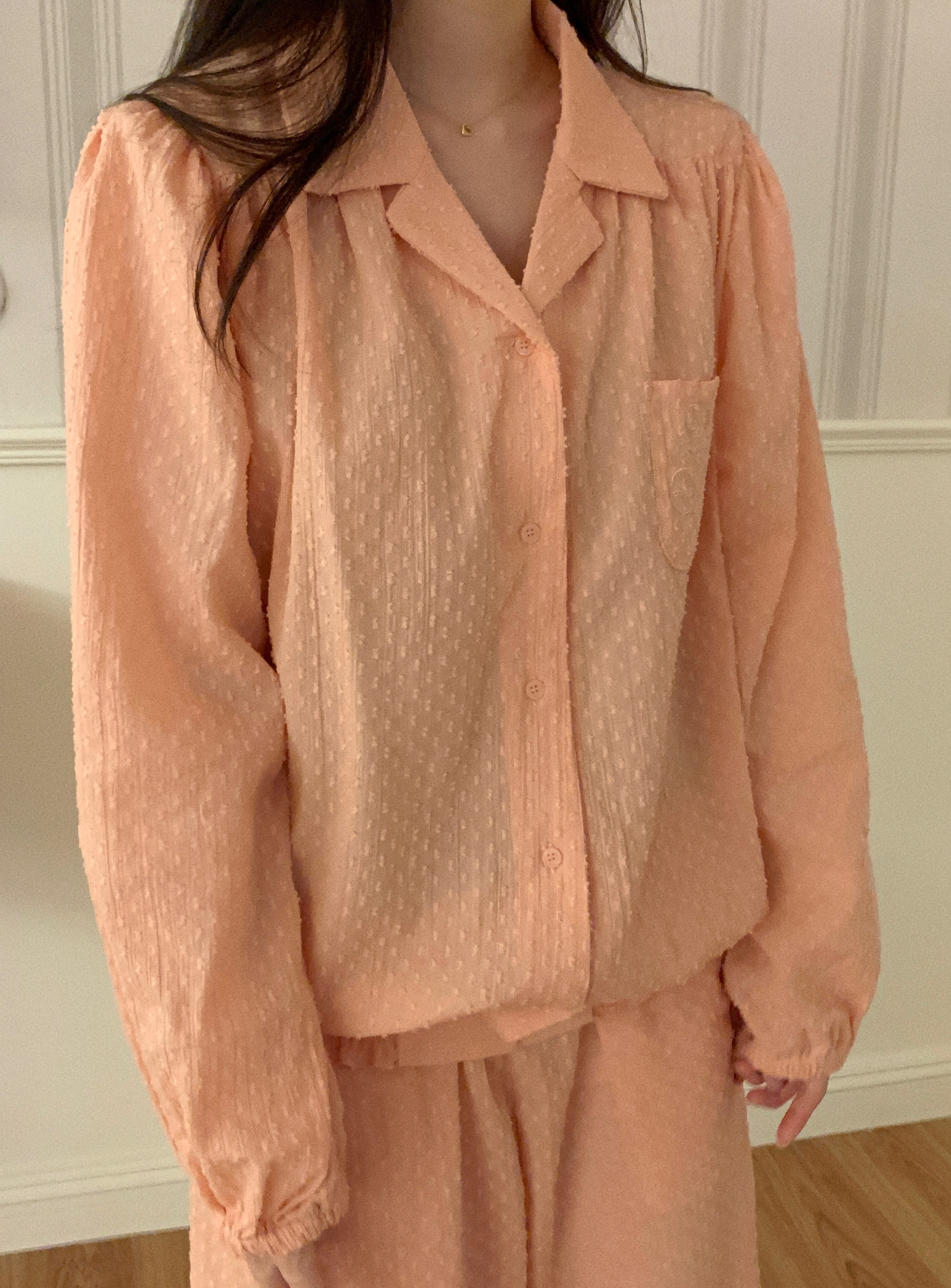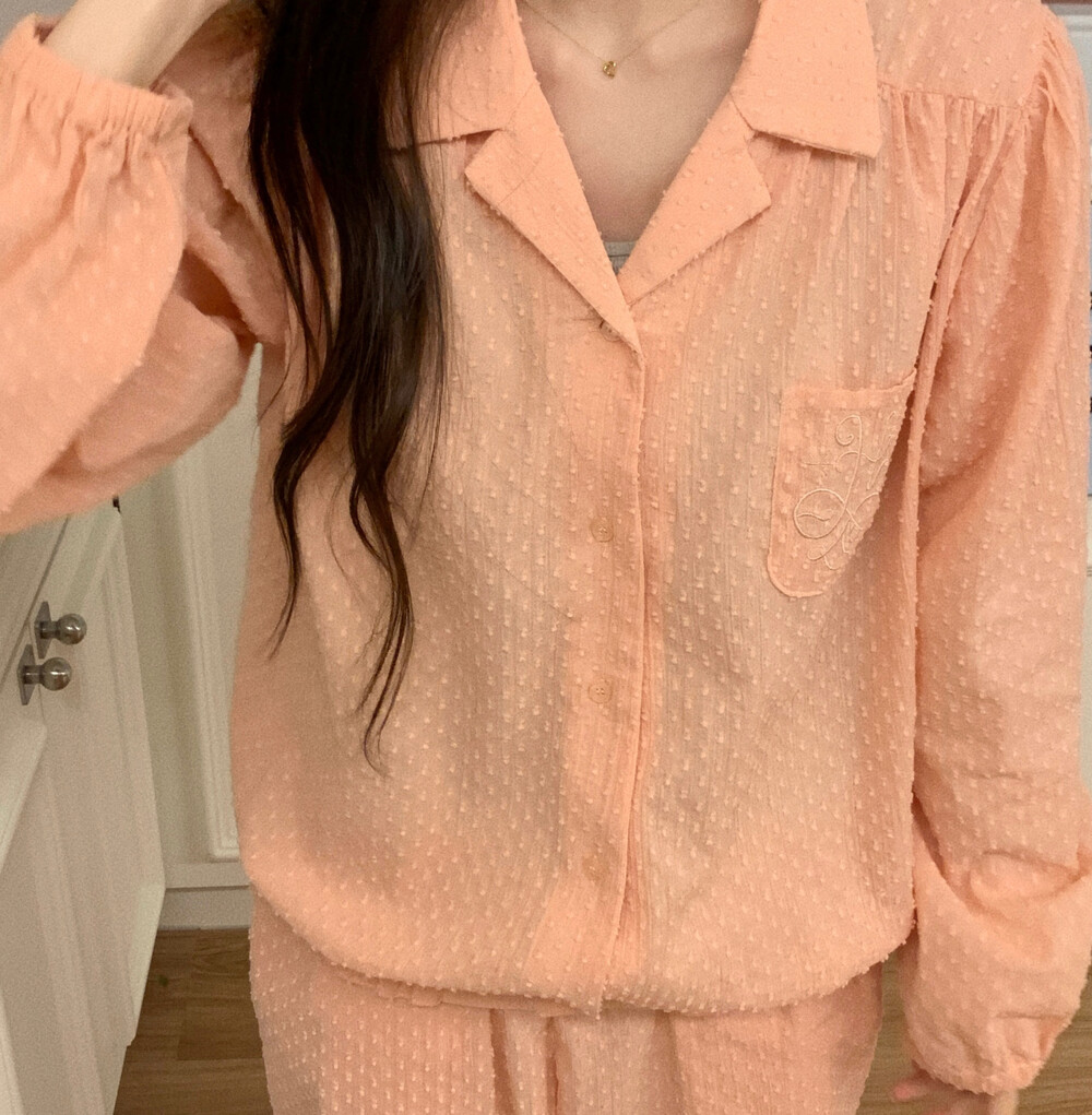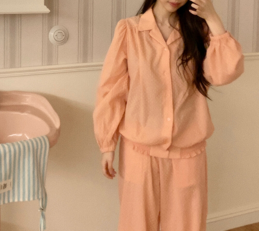 [100%COTTON] Hebe blouse pajama set (peach fuzz)