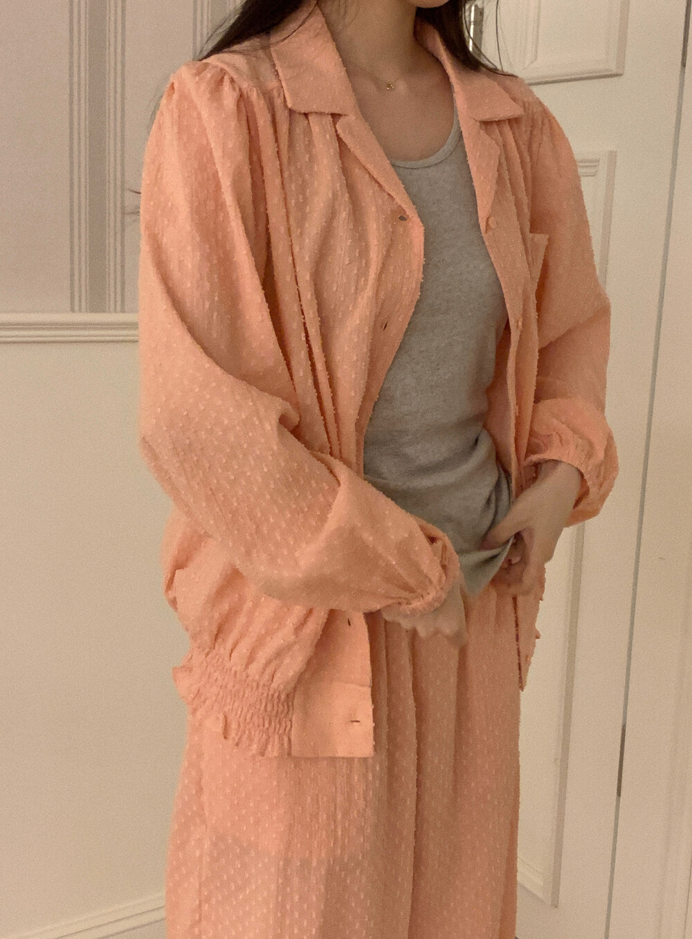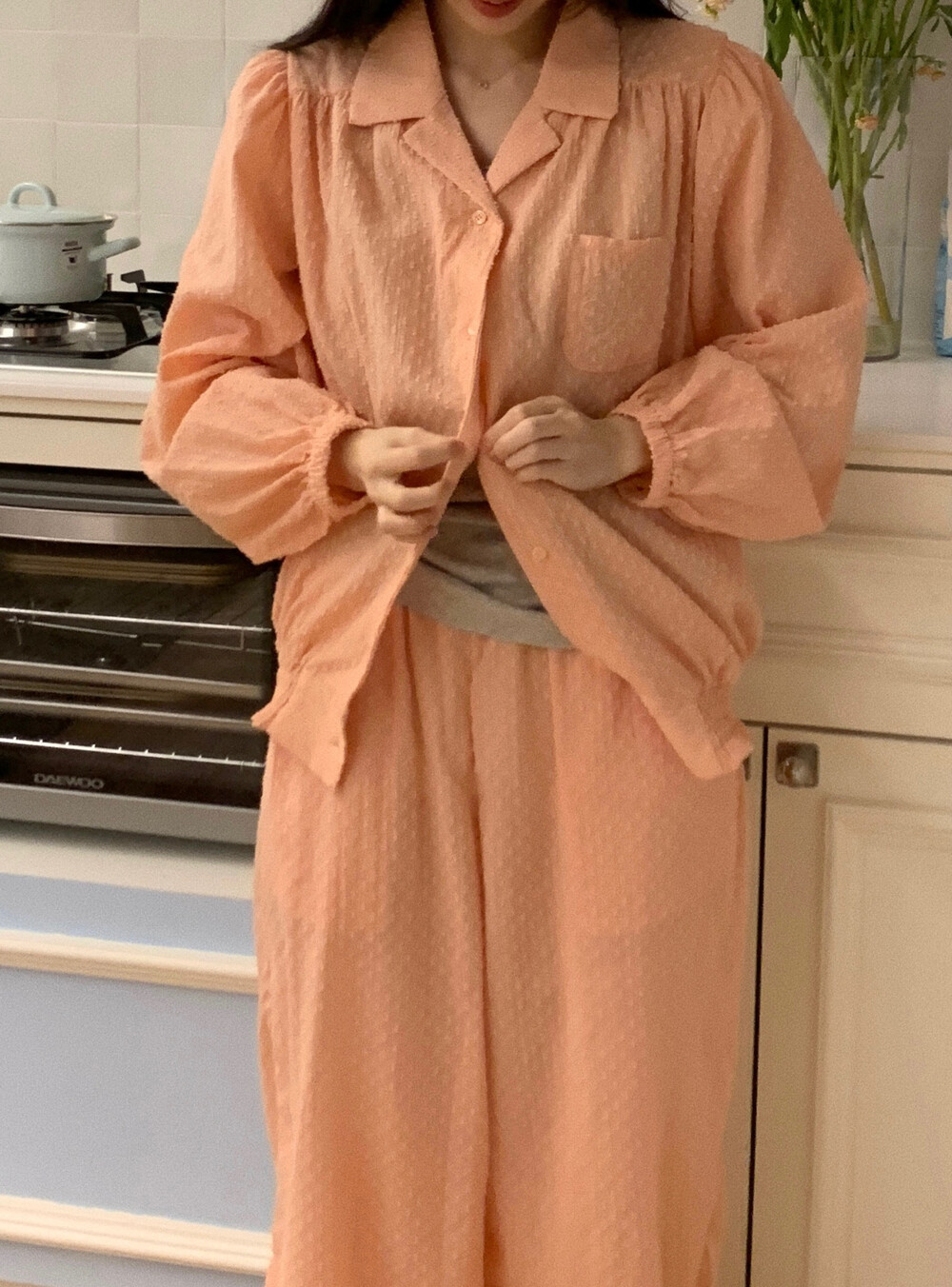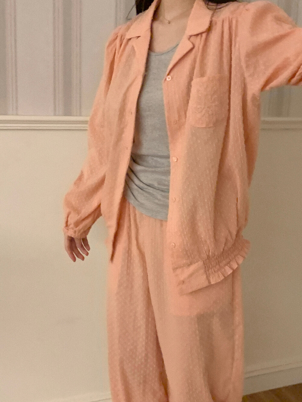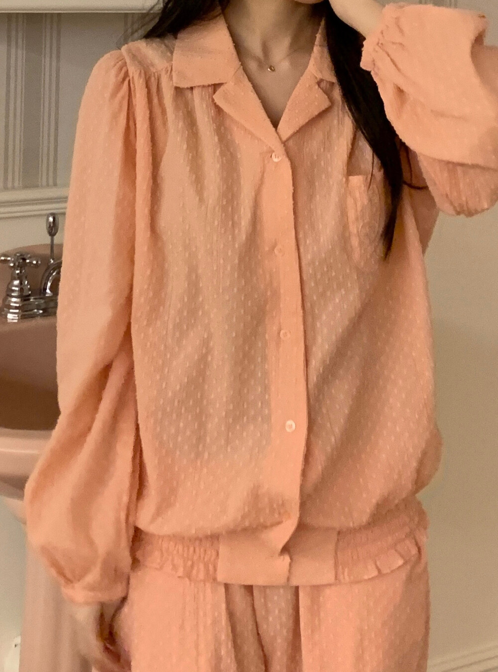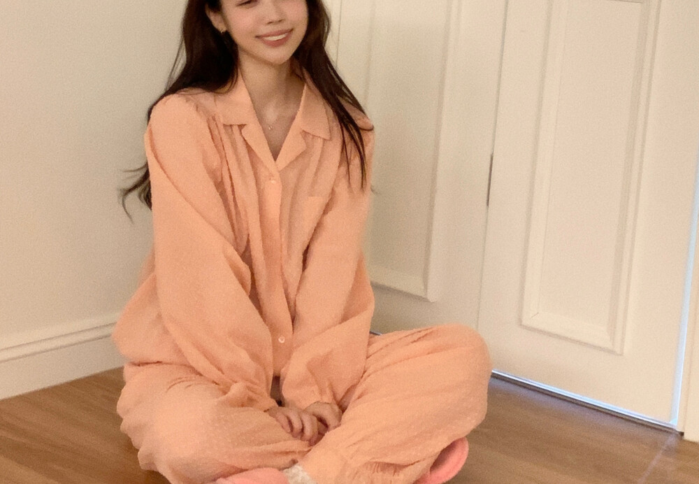 [100%COTTON] Hebe blouse pajama set (peach fuzz)