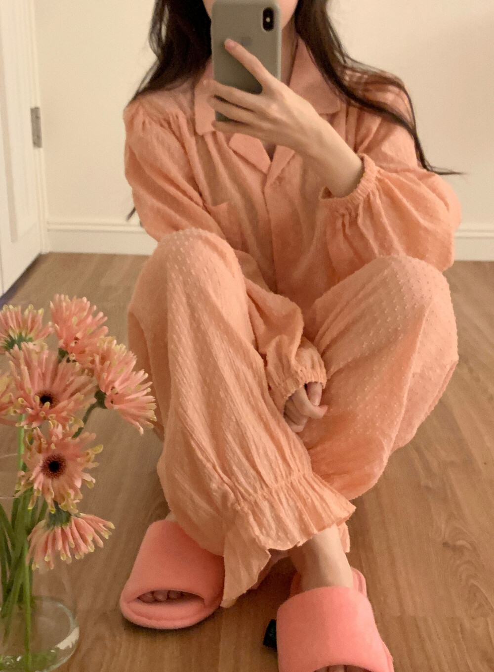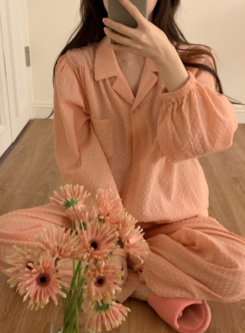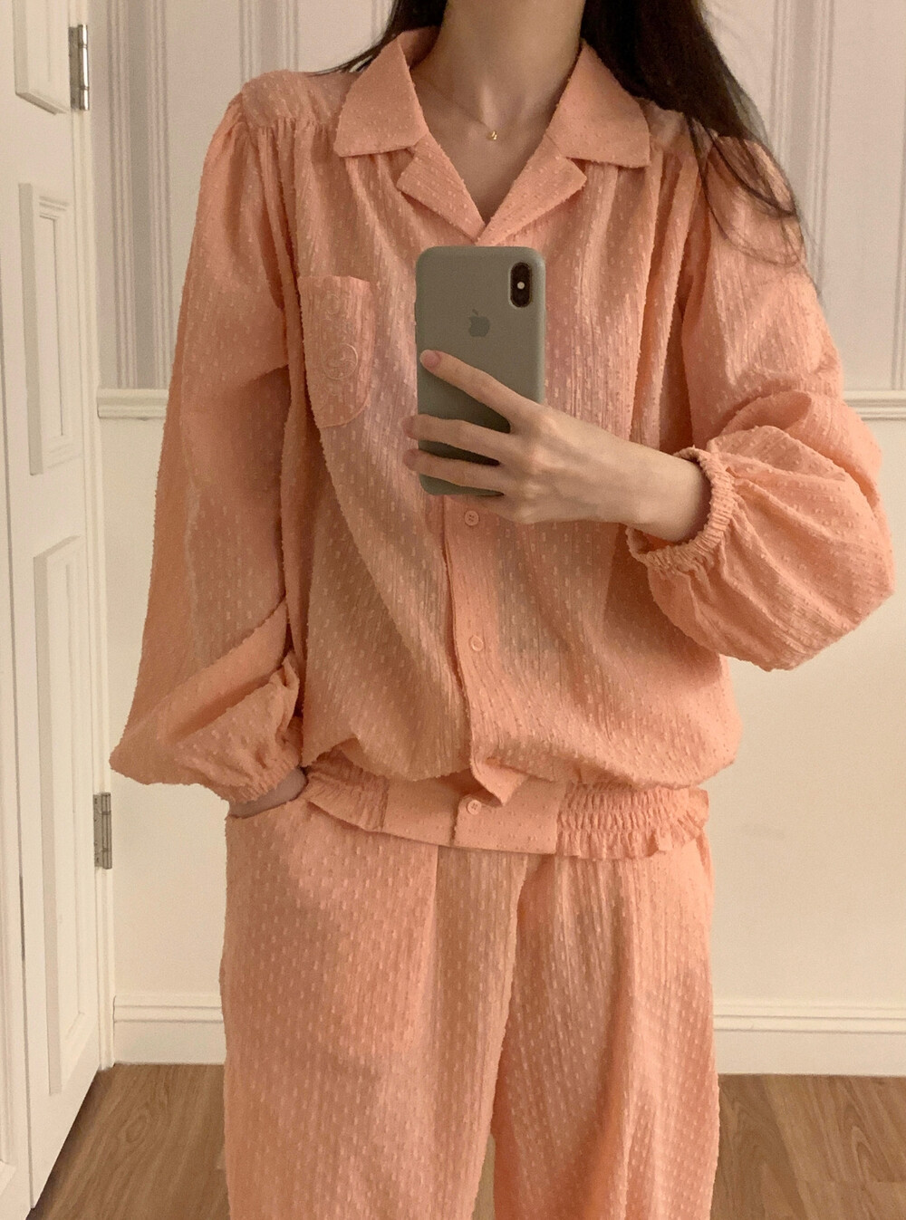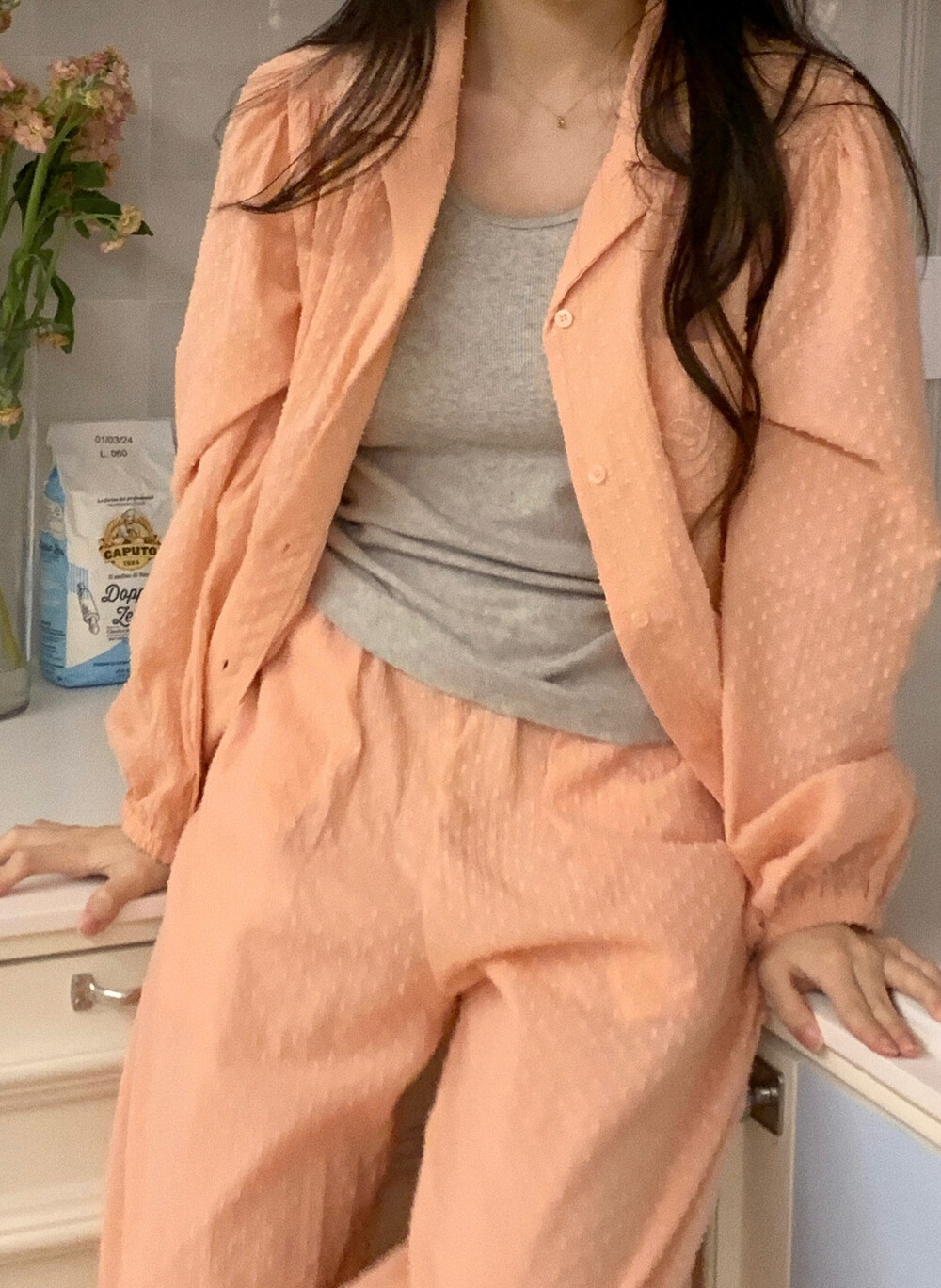 [100%COTTON] Hebe blouse pajama set (peach fuzz)